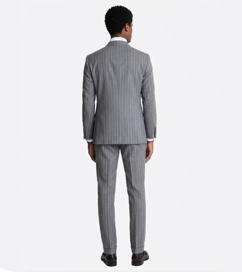 The Ashford Cotton Grey Pinstripe Suit is a breathtaking declaration of sartorial confidence and modern functionality, designed for the gentleman who seeks a commanding presence with a touch of European flair. Crafted from premium high-density cotton, this heather grey masterpiece features a crisp, vertical pinstripe pattern that adds significant visual height and character while providing the exceptional comfort and breathability required for demanding professional environments. Its regular fit construction and striking double-breasted design ensure a sharp, authoritative profile that enhances the wearer’s natural frame with absolute precision.