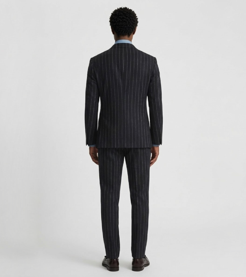The Ashford Cotton Pinstripe Black Suit is a breathtaking declaration of sartorial confidence and modern functionality, designed for the gentleman who seeks a commanding presence with a touch of European flair. Crafted from premium high-density cotton, this black masterpiece features a crisp, vertical pinstripe pattern that adds significant visual height and character while providing the exceptional comfort and breathability required for demanding professional environments. Its regular fit construction and striking double-breasted design ensure a sharp, authoritative profile that enhances the wearer’s natural frame with absolute precision.