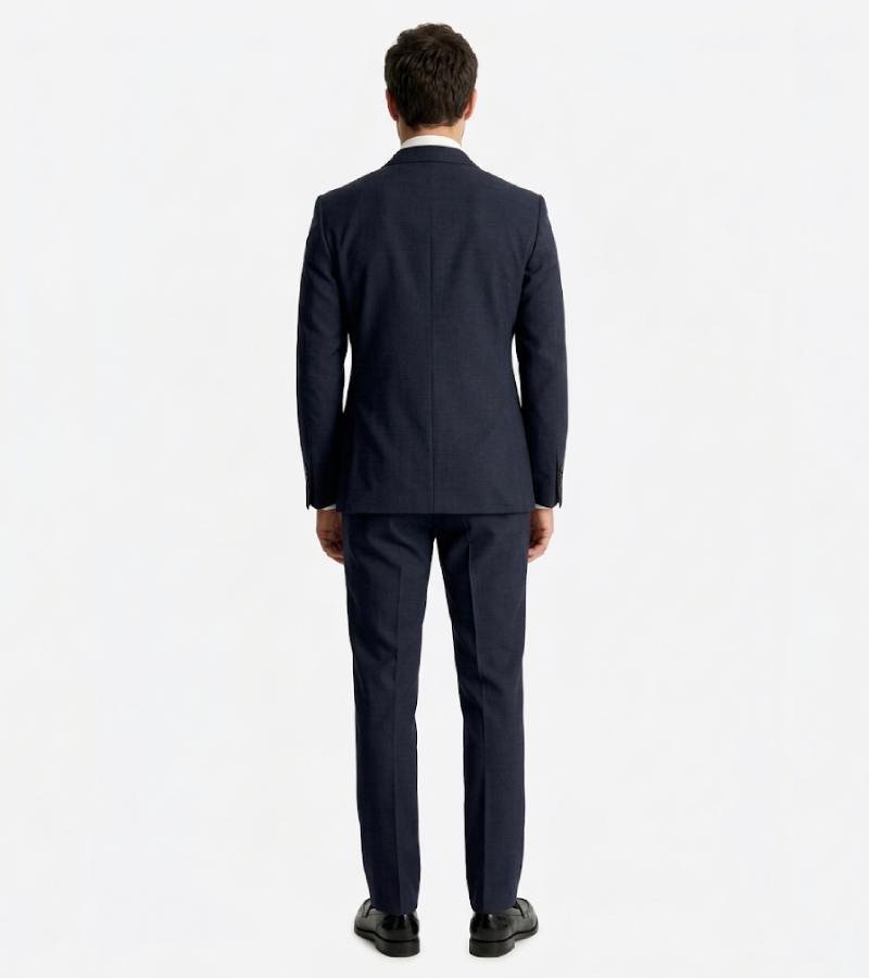 Every element of this two-piece ensemble has been meticulously considered to offer a cohesive and refined look, from the precision-cut peak lapels and tonal button hardware to the clean, streamlined finish of the jacket and trousers. The timeless indigo tones provide a sophisticated canvas that pairs strikingly with the featured patterned navy silk tie, crisp white shirt, and polished black leather loafers, allowing for a personalized look that exudes unshakeable, quiet confidence. Suit Heritage also provides bespoke suiting services for a personalized experience, ensuring every detail of your Brighton suit is tailored precisely to your unique measurements and stylistic vision. Invest in a garment that defines contemporary elegance and serves as a permanent cornerstone of your refined formal collection.