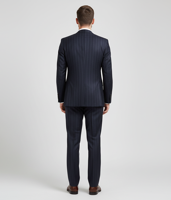 Every aspect of this dark navy pinstripe suit reflects an unwavering commitment to enduring quality and functional luxury. The natural properties of the premium wool fabric provide exceptional wrinkle resistance and a fluid drape that maintains a crisp, sharp appearance even during long travel days. Suit Heritage also provides bespoke suiting services for a personalized experience, allowing our discerning clients to customize every detail for a truly unique fit. As a flagship piece within our Heritage Collection, this ensemble showcases a masterful balance of historic tailoring traditions and modern textile performance. By choosing this piece, you are investing in a legacy of fine craftsmanship that ensures a commanding and distinguished presence in any professional setting.
