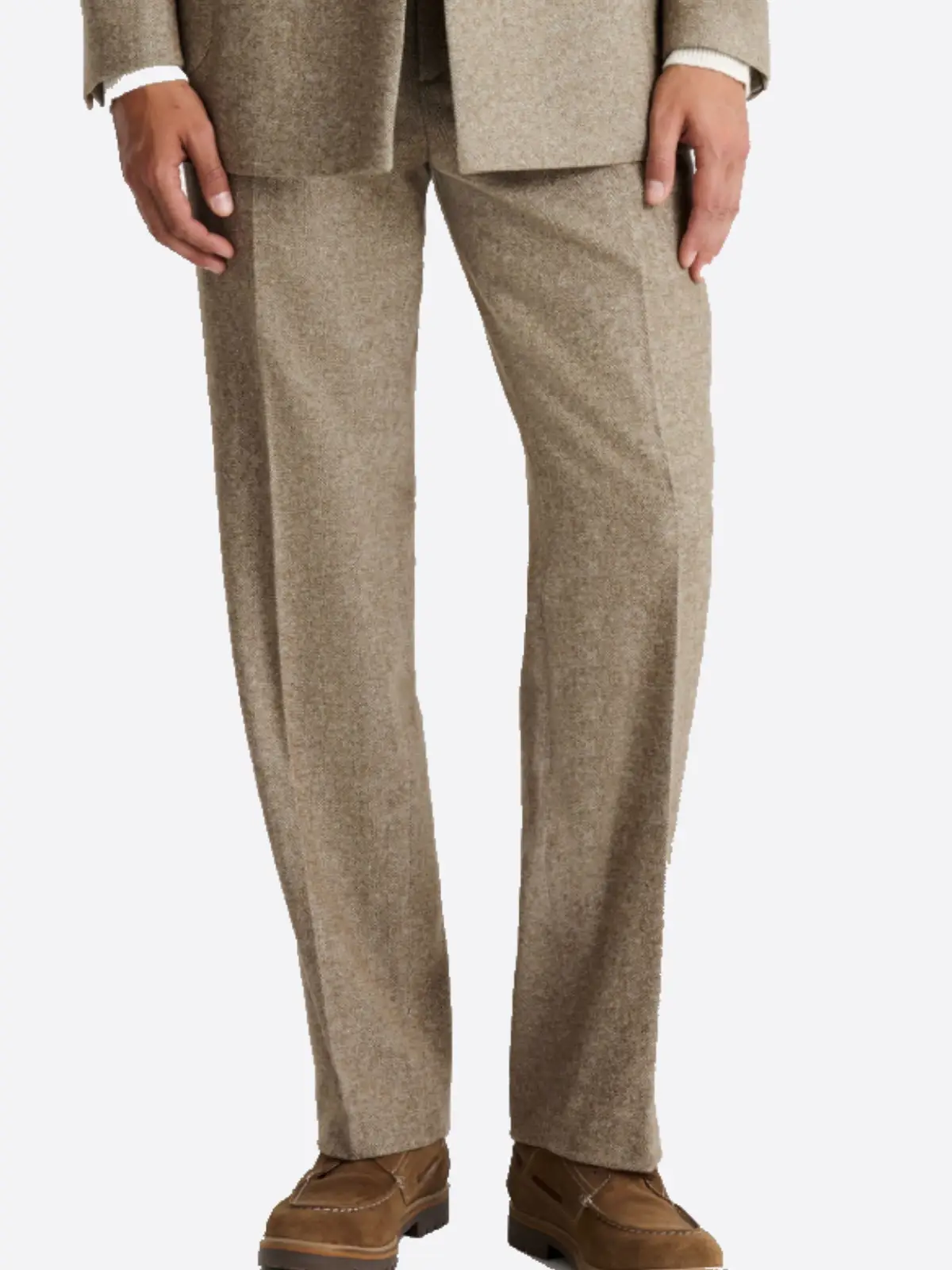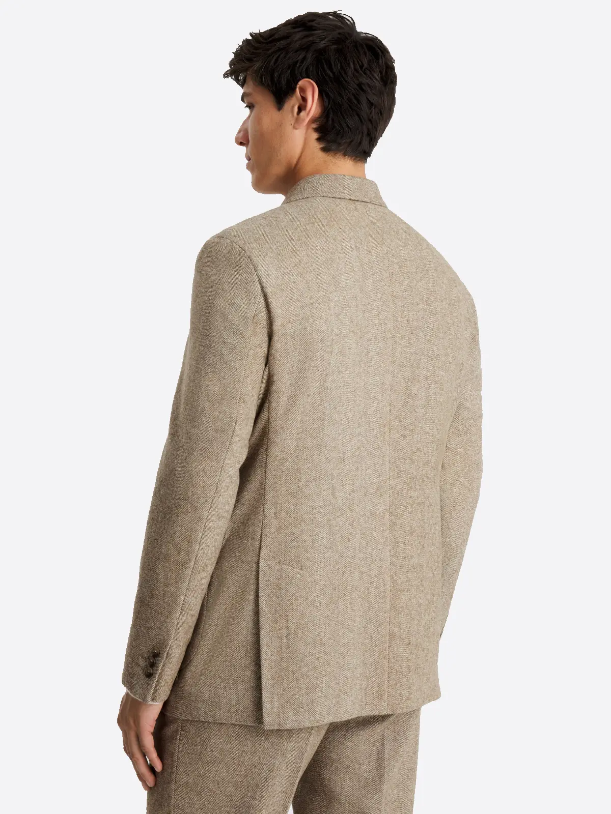 Tailored in a regular fit, this two-piece set offers a timeless silhouette with a more generous cut through the chest and shoulders, prioritizing comfort and a natural drape. The commanding double-breasted jacket features bold peak lapels that accentuate the frame, while the six-button configuration adds a touch of traditional sartorial flair. The look is completed with matching straight-leg trousers that ensure a clean and balanced finish. The neutral beige tone combined with the iconic herringbone design creates a high-definition profile that is both understated and undeniably elegant. Elevate your presence with this Suit Heritage essential, where heritage textures meet the reliability of a classic tailored fit.