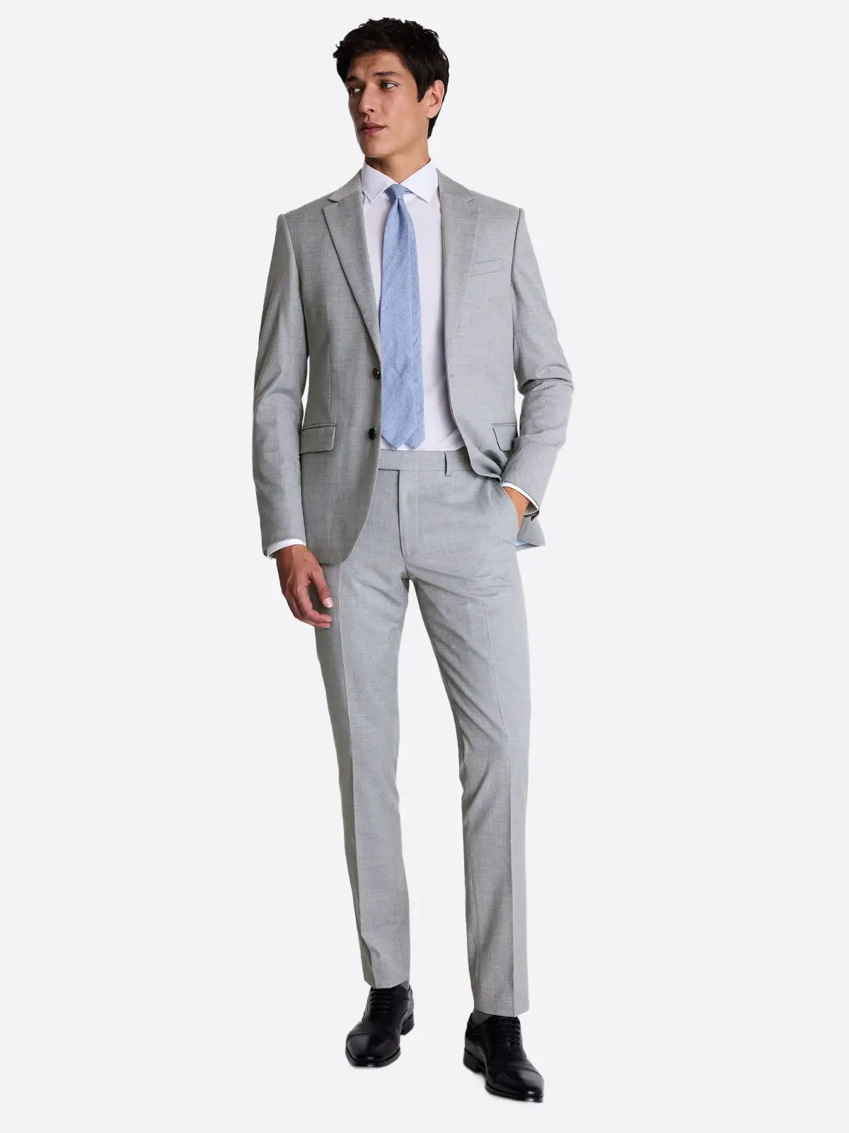 Meticulously tailored in a slim fit, this two-piece set includes a streamlined single-breasted jacket designed to contour the torso for a sharp, high-definition profile. The look is completed with matching tapered trousers that ensure a clean finish at the shoe. The subtle interplay of tones within the light grey plaid prevents the fabric from looking flat, instead creating a textured, high-fashion canvas that pairs perfectly with pastels or crisp white shirting. Elevate your warm-weather wardrobe with this Suit Heritage essential, where timeless geometric design meets the precision of a contemporary, slim-cut silhouette.