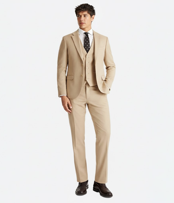 Suit Heritage Men’s Solid Camel Slim Fit 3 Piece Suit