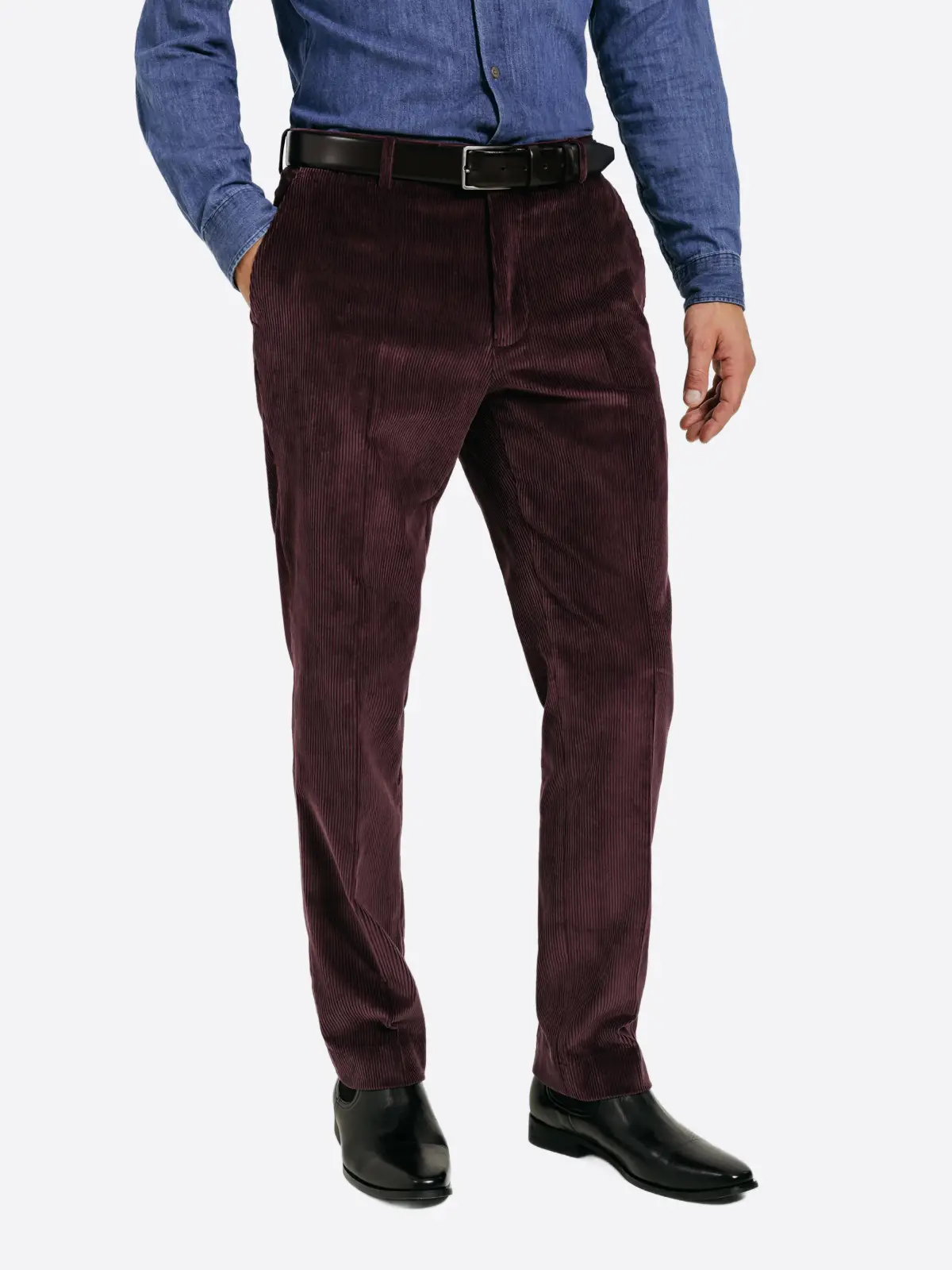 SuitsHeritage Men’s Burgundy Corduroy Relaxed Fit 3 Piece Suit